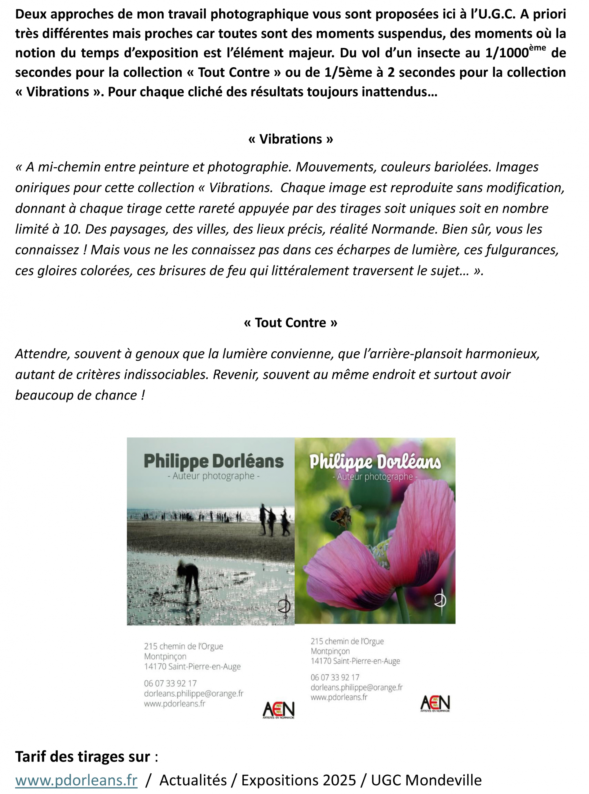 Tarif des photographies 2025. Collection tout contre et vibrations